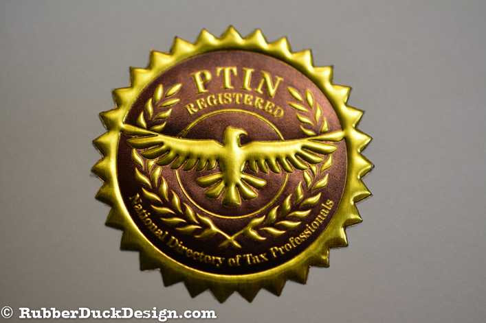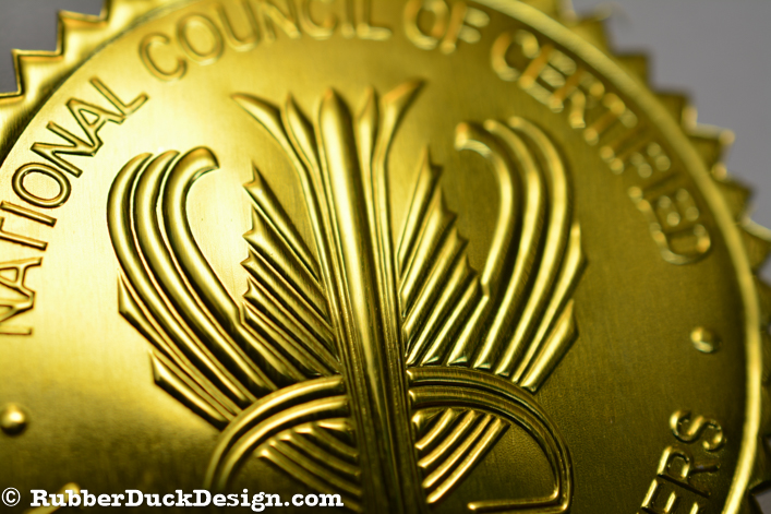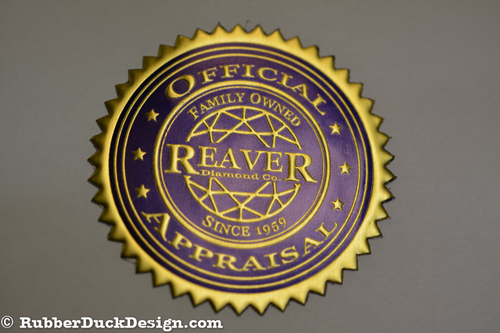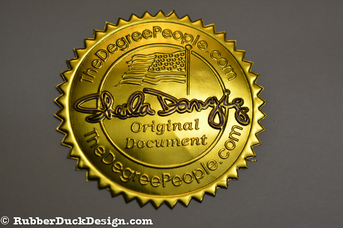 Our embossed foil seals are great for certificate seals. We use the thickest foil in the industry which ensures your seal embosses with the best depth and detail possible.
