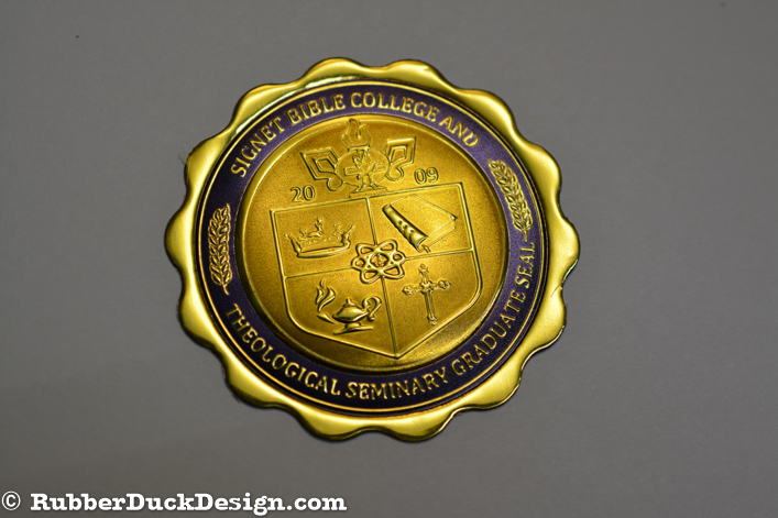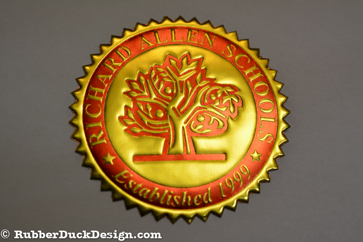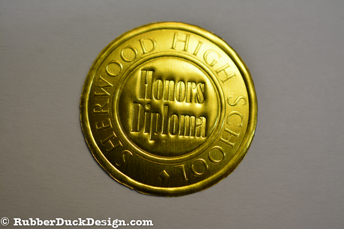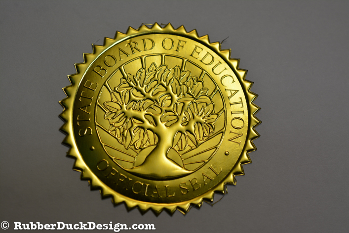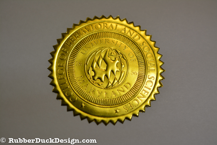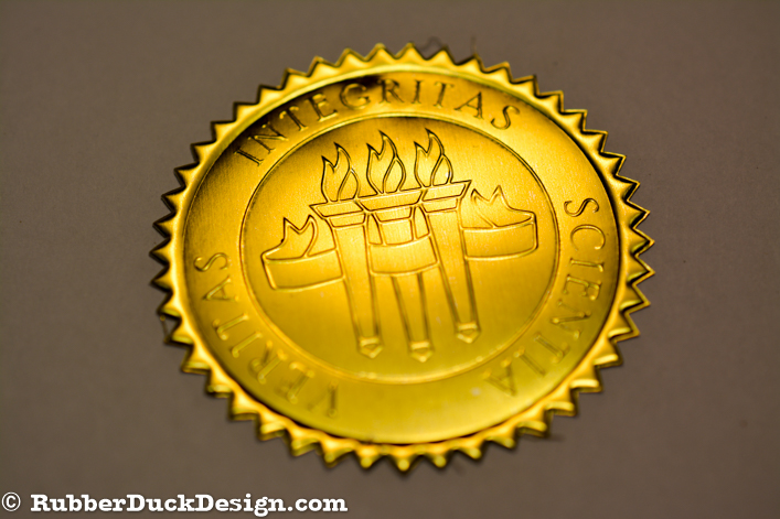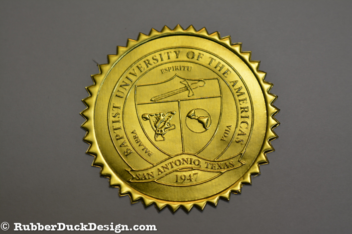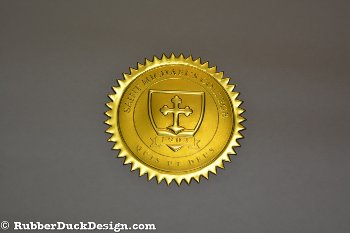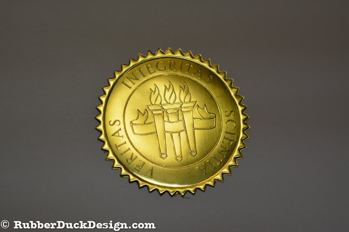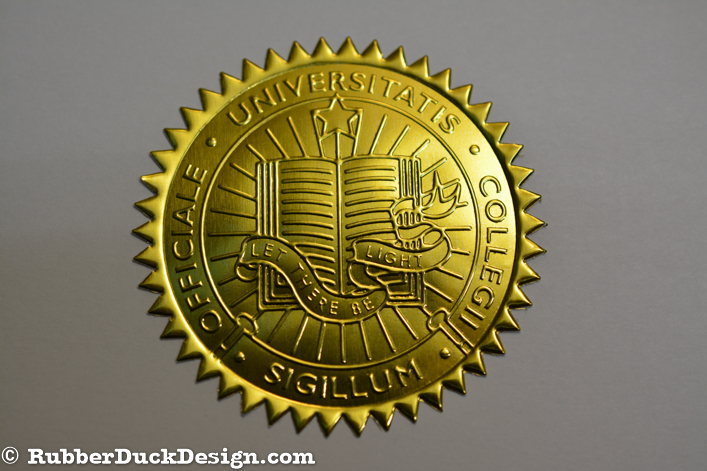 Our embossed foil seals are great for school and university seals. We use the thickest foil in the industry which ensures your seal embosses with the best depth and detail possible.